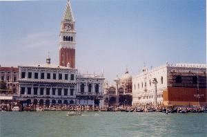Doges en réfection, la place est grouillante de monde et bruyante,