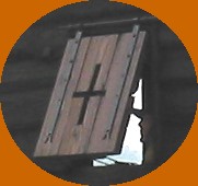 qui s'ouvrent par le bas, pour permettre au garde de tirer sur l'assaillant