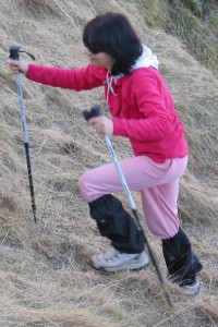 posions les pieds et nous cramponner aux bâtons pour ne pas déraper.