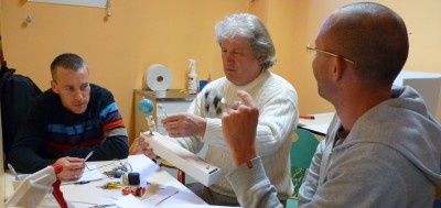 Auriau, animateur d'Astronomie Côte Basque, conseille deux animateurs du centre