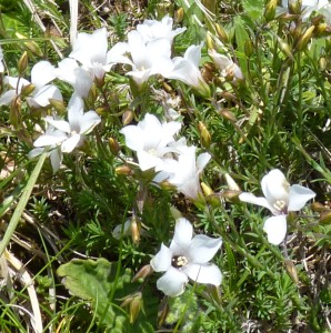 Photo : Saxiphrage des Pyrénées en fleurs (la grande hampe blanche