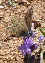 Photos : Criquet, reconnaissable à ses antennes courtes. Papillon (Azuré ?)
