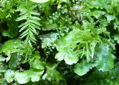 non vasculaires : algues, champignons et lichens, des bryophytes (hépatiques,