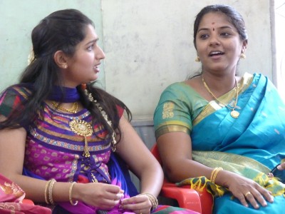 Une fois les prêtres partis et le riz englouti par les corbeaux, Ramya et son père se mettent à discuter sérieusement entre eux dans leur langue en me jetant de petits coups d'oeil. Je ne suis pas assez chic, et Ramya propose de me prêter une de ses tenues (à moins qu'elle n'ait appartenu à sa mère ?). Mahesh aimerait que je me mette en sari, mais je refuse catégoriquement, soutenue par Ramya qui craint qu'il ne me tienne trop chaud. Marie-Jeanne, qui présidait notre section locale de Perspectives asiennes, m'avait confié un jour qu'il fallait être hindoue pour en porter : il s'agit en effet d'une très longue bande de tissu (1,20 m par 5 à 6 mètres) qui est enroulée savamment autour du corps et qui tient sans bouton ni attache d'aucune sorte.