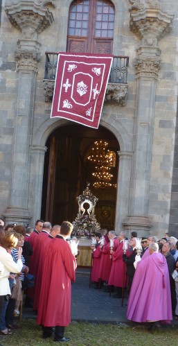 Une équipe de télévision utilisait un drone téléguidé (très bruyant) pour filmer la procession depuis le ciel. |