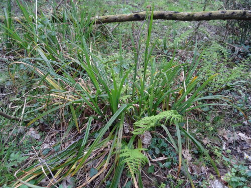 Tout en bas, nous cheminons d'une touffe d'herbe à l'autre pour éviter de patauger et de glisser dans la boue : dans cette zone humide poussent l'aulne glutineux, des touradons de carex (laîches), des fougères luxuriantes. Souvent inondées, ces plantes favorisent l'épuration des eaux. Quelqu'un avance que l'achat de ce site aurait été financé par Ikea en compensation du remblaiement de la zone humide d'Ametzondo qui a permis l'implantation de cette grande surface commerciale. Toutefois, après enquête sur la Toile, je lis qu'il n'en est rien. Les deux sites compensatoires envisagés et mentionnés dans les documents publiés sont celui de Briscous (52,62 ha), localisé dans le lit majeur de l'Adour, et celui des barthes de l'Urdains (30,4 ha), propriété de la CABAB en liaison avec la Nive. Quant à Canopia, le bosquet détruit a été compensé par un programme de reboisement du jardin de Trouillet dans le quartier d'Arrousets de Bayonne, complété par l'aménagement du bois d'Arrousets derrière le centre de loisirs, soit une surface de 4,6 ha au total. Dans ce marais de l'ENS du moulin de Habas, on trouve par exemple la grenouille agile (Rana dalmatina - Bonaparte, 1840). C'est l’une des quatre espèces, très similaires de visu, de grenouilles brunes indigènes en Europe centrale. Ne mesurant pas plus de 75 mm de long, elle est nettement plus petite que la grenouille rousse, mais cependant un peu plus grande que la grenouille agile d’Italie et la grenouille des champs. Les mâles sont plus petits que les femelles. Ce sont ses très longues pattes postérieures qui lui ont valu ce qualificatif et lui permettent de faire des sauts impressionnants. Nous franchissons une clôture Napoléon. Elle est formée d'une butte construite par creusement d'une rigole parallèlement à un ruisseau situé à un mètre de la butte. Elle marque la limite de propriété entre deux voisins. - Photos : Laîche - Grenouille agile -