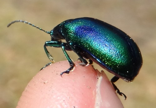 Nous finissons par reprendre la marche en admirant le sous-bois constellé d'hépatiques trilobées, d'anémones sylvie et de pulmonaires. Sur le quatrième arbre, le rivet est encore fiché dans le bois. 1700 m, c'est le lieu de prédilection de l'ours. Des buissons de daphné lauréole, à ne pas confondre avec le rhododendron, poussent parmi les euphorbes et les hellébores. Les petites fleurs jaunâtres regroupées en bouquets axillaires au milieu des feuilles ôtent toute ambiguïté à l'identification. Elles sont un peu tardives, en principe la floraison est plus précoce, avant que les hêtres ne plongent le sous-bois dans l'ombre épaisse de leur feuillage. Leur nom provient du grec Dáphnê (laurier), qui désignait dans la mythologie une nymphe d'une très grande beauté, fille du dieu fleuve Pénée. Sa légende est notamment rapportée dans les Métamorphoses d'Ovide : pour se venger d'Apollon qui s'est moqué de lui, Cupidon, dieu de l'Amour, décoche simultanément deux flèches, une, en or, sur le dieu lui-même, qui le rend fou amoureux de la belle Daphné, l'autre, en plomb, sur la nymphe, qui lui inspire le dégoût de l'amour. Alors qu'Apollon la poursuit, celle-ci, épuisée, demande à son père, le dieu fleuve Pénée, de lui venir en aide : celui-ci métamorphose sa fille en laurier-rose (en grec rhododaphné). Apollon, qui est toujours amoureux d'elle, en fait alors son arbre, et le consacre aux triomphes, aux chants et aux poèmes... Le daphné lauréole, comme les autres daphnés (bois-gentil, garou, camélée des Alpes), est une espèce toxique (écorce des tiges, racines, fruits). Autrefois, les fruits des daphnés entraient dans les appâts destinés aux loups et aux renards (on retrouve la lutte paysanne ancestrale contre les prédateurs des troupeaux ou volaille) ou encore dans les mélanges d’herbe servant à endormir le poisson. Son écorce donnant une teinture jaune-pâle a été utilisée pour colorer la laine. - Photos : Daphné lauréole - Chrysomèle - Ci-dessous : L'Arrec de Besse -