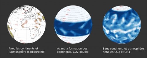 Des simulations informatiques montrent qu’avec une vitesse de rotation de la Terre supérieure à la vitesse actuelle, peu ou pas de terres émergées, peu ou pas de nuages dans la zone intertropicale et une atmosphère plus riche en gaz à effet de serre, la Terre a pu bénéficier d’une température moyenne proche des 15°C actuels très tôt après sa formation. Cependant, ces gaz ne protégeaient pas la surface terrestre du rayonnement UV. Il faudra attendre, pour cela, l’invention par le vivant de la photosynthèse.