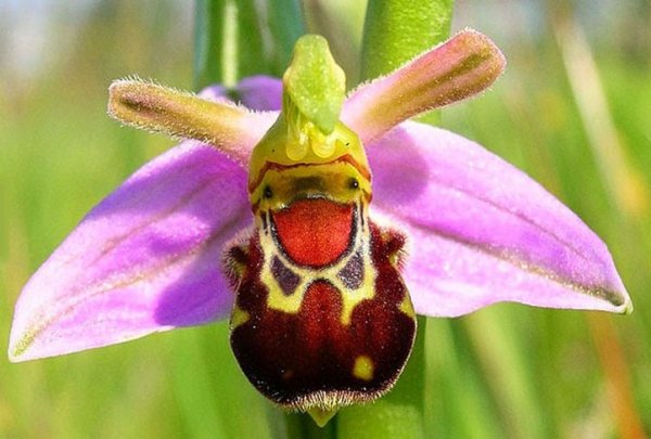 Ophrys abeille, orchidée terrestre européenne pollinisée par des abeilles solitaires, grâce à son odeur d’abeille femelle |
