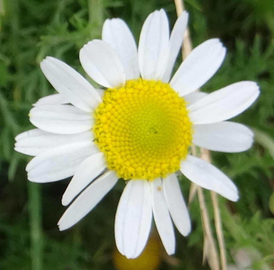 Matricaire camomille Les fleurs composées (Astéracées) ont commencé leur expansion il y a seulement une trentaine de millions d’années; elles font donc partie des plantes à fleurs les plus jeunes. Séparées par la dérive des continents, les composées eurasiennes et américaines évoluèrent séparément, mais les plus performantes traversèrent l’Atlantique dans les deux sens en compagnie de l’homme pour envahir le monde entier. C’est ainsi qu’un grand nombre d’espèces de chardons, armoises, pissenlits, camomilles, achillées et séneçons eurasiens firent le trajet Europe-Amérique. D’autres herbes comme le galinsoga et l’artémise firent le trajet inverse. La réussite "écologique" des fleurs composées est incroyable, au point qu'il peut être difficile de s’en débarrasser dans un contexte agricole (ex. les chardons). Avec plus de 1500 genres, cette famille représente de loin la majorité des fleurs pentamères (5 pétales, 5 étamines, 5 carpelles). Toutes ces fausses fleurs sont construites à peu près sur le même modèle de base. Lorsqu’on observe une ombelle, on comprend aisément que le nombre de petites fleurs qu’elle présente est relativement limité, puisque leurs tiges partent d’un même point. Un moyen élégant pour augmenter leur nombre consiste à supprimer les pédicules et à implanter les fleurs côte à côte sur le sommet élargi de la tige, exactement comme les cheveux sont implantés sur notre tête, d’où le nom de capitule donné à cette disposition. |