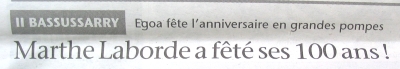 Article paru le 9 juin 2006 : "Marthe Laborde a fêté ses 100 ans !"